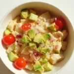 Avocado Chicken Salad — creamy, bright, and utterly satisfying. Imagine the buttery scent of ripe avocado mingling with a whisper of lime, the savory warmth of tender shredded chicken, and the pop of juicy cherry tomatoes. Each bite offers a contrast: silky avocado, meaty chicken, a hint of sharpness from red onion, and the cooling tang of Greek yogurt. It’s comfort without heaviness — light enough for a quick weekday lunch, elegant enough for a brunch spread, and nourishing enough to pack into weekday lunches.