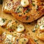The first time you pull this Creamy Garlic Chicken from the pan, the kitchen fills with a warm, buttery aroma threaded with bright, roasted garlic and the nutty perfume of Parmesan. The sauce is luxuriously silky, clinging to each tender chicken breast; the meat itself is juicy with a golden sear that gives way to a melt-in-your-mouth bite. Imagine twirling a fork through that cream, catching flecks of herb and the slight snap of freshly cracked black pepper — comfort food that still feels indulgent and thoughtful.