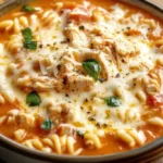 There’s something irresistibly comforting about the smell of simmering tomatoes, garlic, and melted cheese that fills your home — imagine that scent on a chilly evening, the steam fogging your windows as you ladle a warm, creamy bowl of soup. The first sip delivers a harmonious blend of tangy tomato, savory Parmesan, and tender shredded chicken, while al dente rotini adds a satisfying chew and mozzarella on top becomes gloriously stringy. This Crockpot Chicken Parmesan Soup is the culinary equivalent of a warm hug: familiar, reassuring, and just a little indulgent.