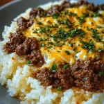 There’s something unforgettable about the scent of garlic melting into butter while beef sizzles — an aromatic thread that promises comfort before the first forkful. This Garlic Butter Beef and Rice recipe delivers warm, savory richness: silky cheese sauce clings to tender grains of rice, beef adds a hearty bite, and a final scatter of parsley brightens each spoonful. Texturally it’s creamy with little pops from the rice and a gentle chew from browned beef; the taste is a layered chorus of buttery garlic, umami beef, sharp cheddar, and nutty Parmesan.