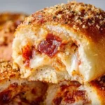 Comforting Hawaiian rolls filled with pizza flavors, including mozzarella, pepperoni, and tangy pizza sauce, baked to perfection.