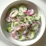 There’s a cool, tangy whisper in every forkful of this sour cream cucumber salad — the clean, green scent of cucumber, a faint onion tang, and the creamy, slightly tangy richness of sour cream that coats each thin slice. The cucumbers snap under your teeth, the dressing is silky, and the dill adds a bright, herbaceous finish that lingers long after the last bite. It’s the kind of side that calms a busy day and sparks small, happy conversations around the table.