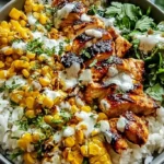 Close your eyes and imagine a steaming bowl where the sweet, charred pop of corn meets smoky, spice-rubbed chicken, all folded into warm, fluffy rice. The aroma of lime, cilantro, and smoked paprika rises like a promise; the first bite delivers creamy Cotija and tangy mayo-sour cream sauce, brightened by a squeeze of lime and a snappy red onion crunch. Textures play—a crisp char on the corn, tender slices of chicken, creamy sauce, and buttery avocado—so each spoonful alternates sweetness, heat, cream, and brightness.