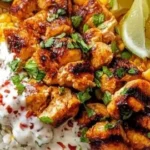 There’s something instantly comforting about the sizzle of corn meeting hot oil, the bright pop of lime, and warm, tender chicken sliced over steaming rice. This Street Corn Chicken Rice Bowl brings together sweet-charred corn, smoky spices, creamy lime crema, and salty cotija for a bowl that sings with texture — crunchy kernels, soft rice, juicy chicken, and a cooling dollop of yogurt. The aroma of charred corn and cumin will pull you into the kitchen; the first bite will make you close your eyes and smile.