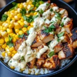 There’s something magnetic about the scent of charred corn and warm lime drifting from the pan — bright, smoky, and just a little indulgent. This Street Corn Chicken Rice Bowl blends those aromas with tender, spiced chicken and creamy cotija sauce so each bite is an exciting contrast: crisp char, juicy meat, fluffy rice, and a cool, tangy drizzle. It’s the kind of dish that makes a weeknight feel special and a weekend gathering effortlessly festive.