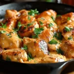 A rich and buttery chicken skillet dish that is perfect for quick weeknight dinners or casual gatherings, offering comforting flavors in a simple, one-pan recipe.
