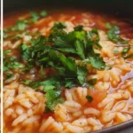 A warm and comforting Tomato Rice Soup, perfect for cozy evenings. This dish combines the tangy flavor of tomatoes with aromatic herbs and tender rice.